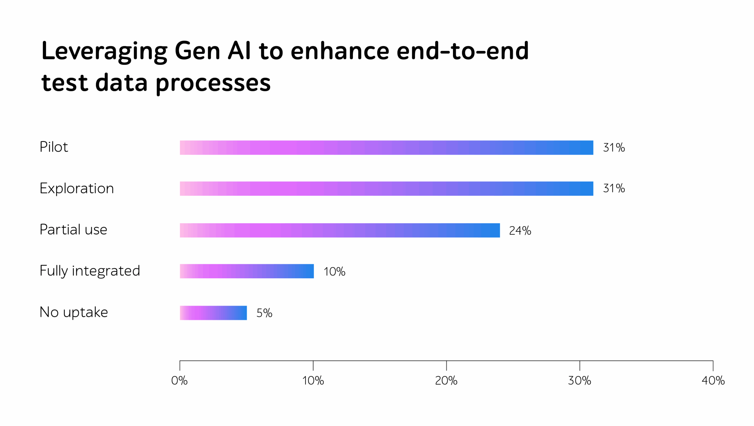 Test data is like the foundation of a house: if it’s weak or incomplete, everything built on top becomes unstable. Solid test data keeps the entire QA effort standing. With 95% of the WQR respondents leveraging Gen AI to some extent to pour that foundation faster and more precisely, QA can stand on more reliable ground.